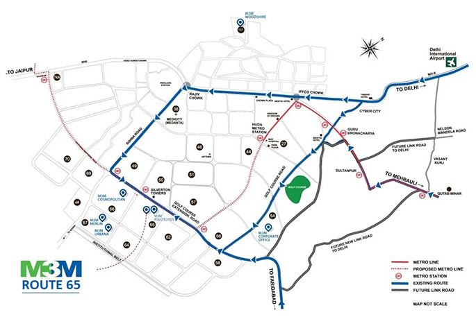 M3M Route 65 is Gurgaon’s next big fashion & food destination, located in Sector - 65 of Gurgaon, the emerging retail capital of India. It is set to become the most premium and luxurious high street in the area and will feature retail units, anchor shops, hypermarkets, F&B-enabled shops, and kids' play zones for cherishing moments of a lifetime! The futuristic design of this project with a massive HNI catchment of over 50,000 and the robust infrastructure ensures that you can enjoy all that this project has to offer, making it stand out among other projects in India.